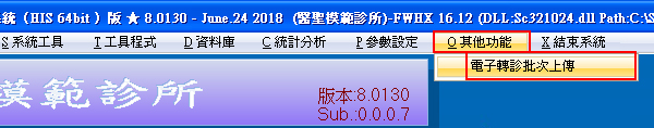 ●於醫聖主選單上方多功能選單列,新增『O其他功能』選組及『電子轉診批次上傳』項目功能。