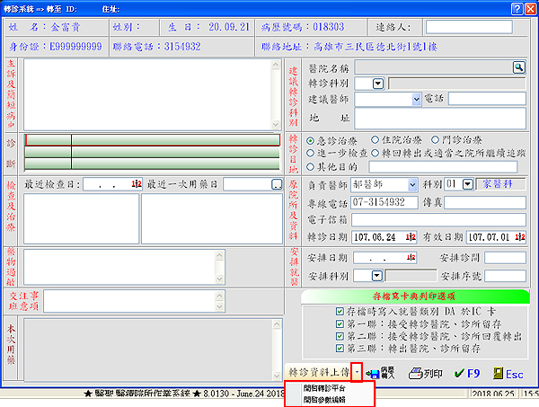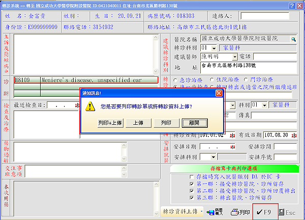 當診醫師將轉診資料填畢,按下「vF9」確認後