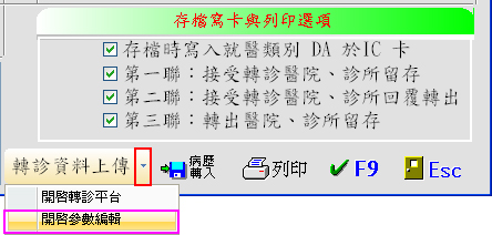→滑鼠左鍵按一下「向下鍵」(下圖紅框處)可點選『開啟署轉診平台』或『開啟參數編輯』