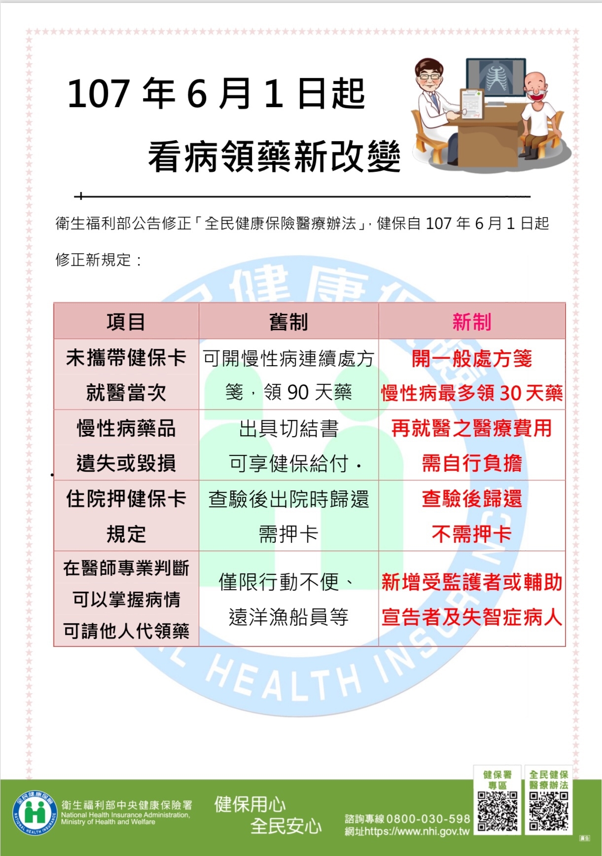 當保險對象未攜帶健保卡就醫,鑑於醫師無法即時查閱其就醫領藥紀錄,因此本辦法規定醫師以開立一般藥品處方箋為限,以杜絕慢性連續處方箋被不當使用或衍生慢箋後續調劑申報之給付爭議。此外,基於保險同一事故不得重複給付之原則,也明訂保險對象領藥後,若有藥品遺失或毀損,其再就醫之醫療費用不予給付,藉以強化病人珍惜醫療資源之觀念。