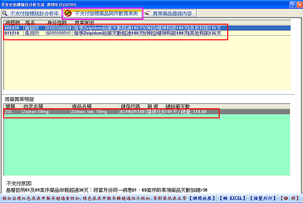 於左上方點選第二個顯示標籤『不支指標藥品與件數異常表』內