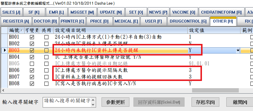 H006 IC上傳處方醫令的提示間隔天數=3