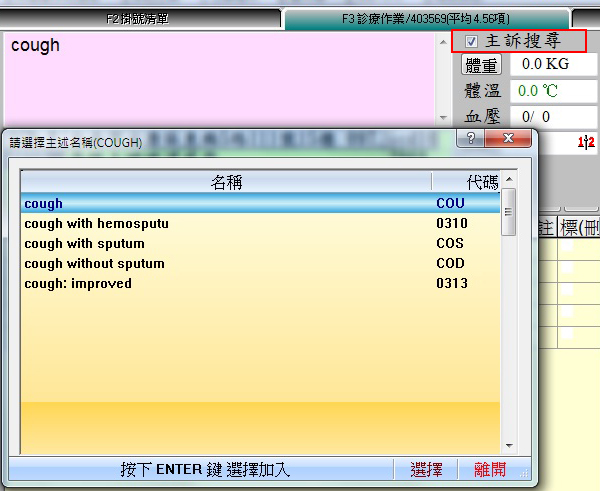 『F3診療作業』鍵入主述內容時,可否設定不要出現相關詞視窗
