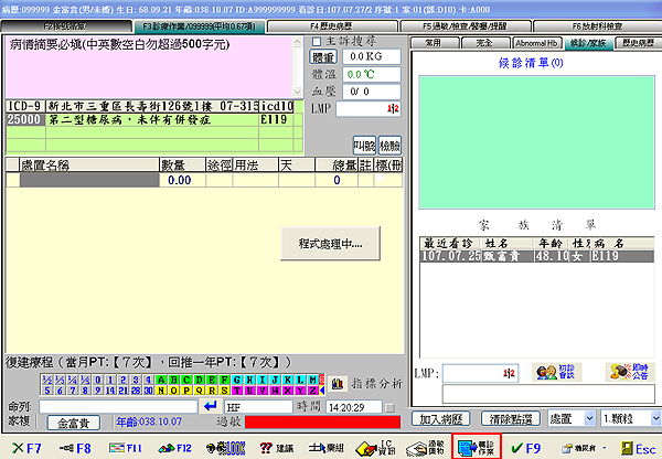 6. 轉診資料上傳成功後會跳回原F3診療作業畫面如下圖,若處置內容尚未輸入轉診費申報代碼
