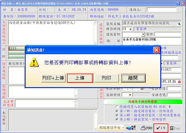 選擇「上傳」(不印轉診單僅將轉診資料上傳至電子轉診平台)