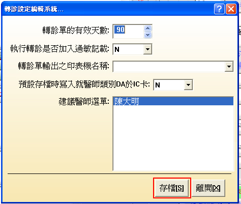 院所可依需求修改設定值後,再按下「存檔」下一筆即套用生效。