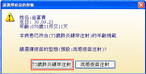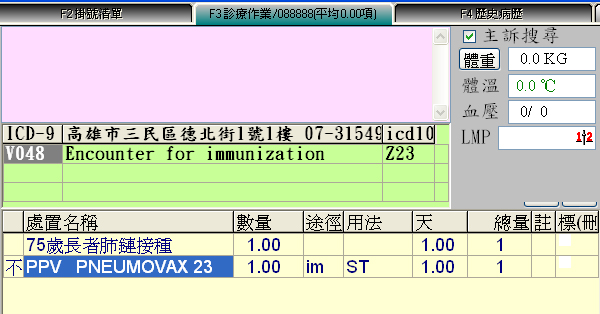 新增「長者肺炎鏈球菌疫苗」健保碼操作說明