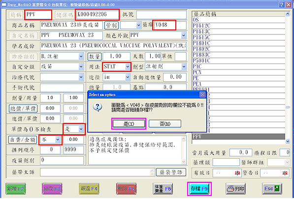 請再輸入疫苗申報代碼「K000492206」,再按下「vF9」批價存檔即可。