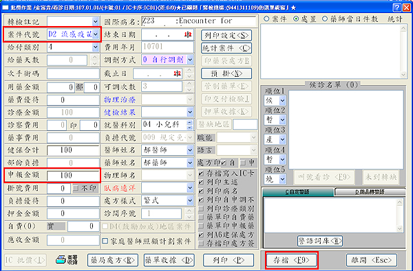 再按下『存起來』『離開』,並結束醫聖系統至桌面再重新進入即可。【設定完成異動畫面如下】