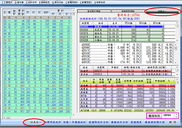復健科優化功能:新增申報常用報表統計比率與內容四表合一顯示