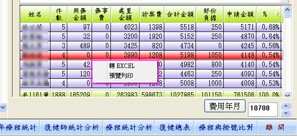 四表合一功能說明:將復健科申報常見統計比率與內容於同一頁面顯示,方便查閱!