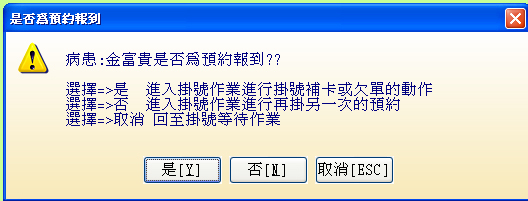 請按下『是』便進入掛號編輯畫面內,再按下『F9存檔』即可。