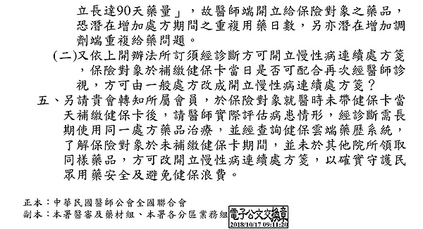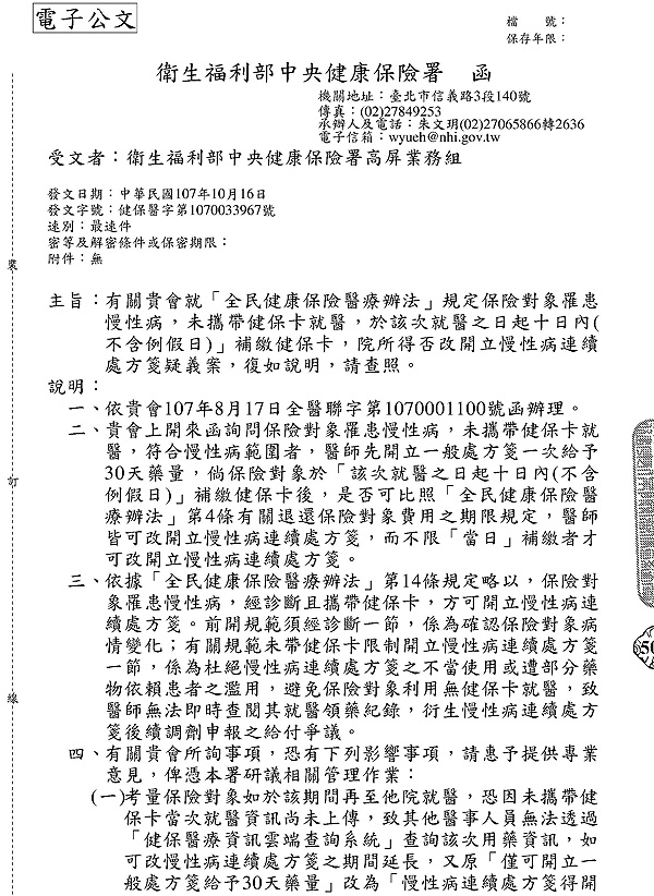 有關規定慢性病患未帶健保卡就醫退押得否改開立連續處方箋疑義