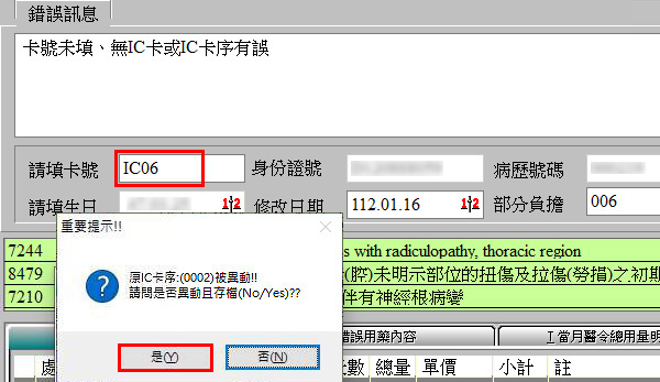 B6持職傷單案件、08慢箋調劑案件、B7戒菸案件出現IC卡序有誤之錯誤筆數,如何處理?
