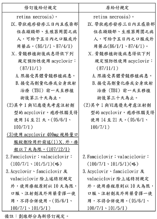 主旨:公告修訂全身性抗疱疹病毒劑之藥品給付規定。