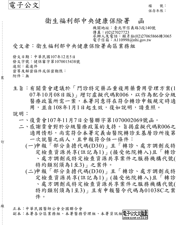 門診特定藥品重複用藥費用管理方案107/10/08更新版
