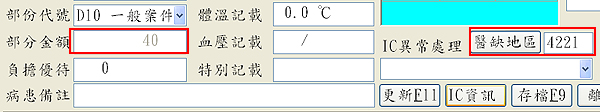 ●掛號畫面「部分負擔」金額會自動顯示減免20%($50x0.8)之金額及院所位列「醫缺區域代碼」