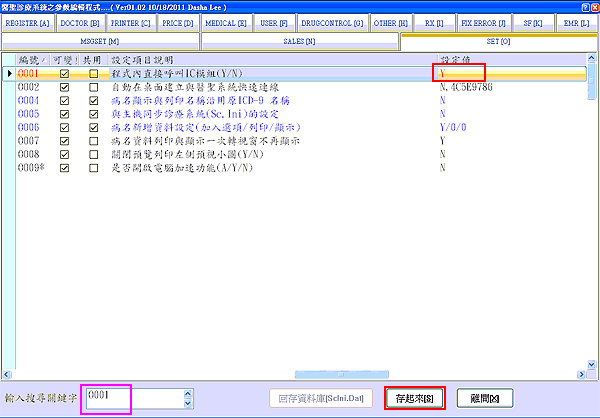 若為「N」請修改為「Y」再按下「存起來」「離開」。