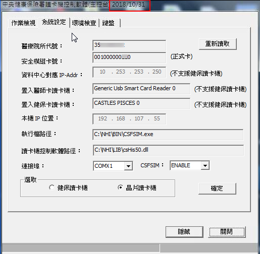 再至『院所資料』>「IC讀卡機」設定「E 晶片」執行環境。