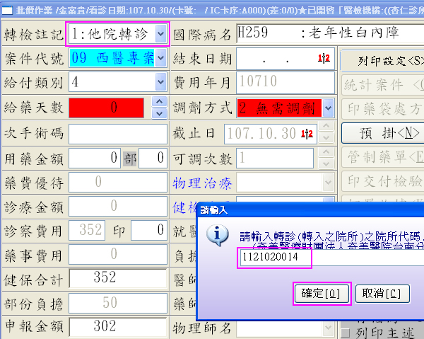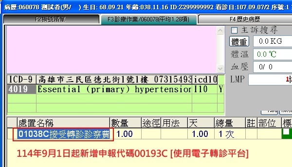 操作說明:於處置內容有鍵入『01038C』接受轉診申報碼時