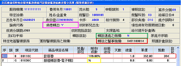 ● 轉診(轉出)醫院代碼XML填報欄位由下圖綠框處改至紅框處位置