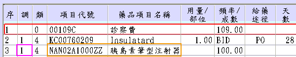 3. 醫令清單段:欄位IDp2「醫令調劑方式」(下圖粉框處)新增醫令類別為3特殊材料(屬特殊材料且未交付調劑)本欄必填0、醫令類別為4不計價(特殊材料且交付調劑者)本欄必填1。