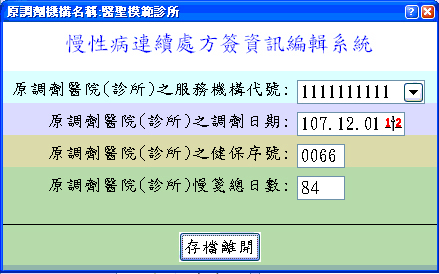 08案件掛號時會出現如下圖記錄連續處方箋第一次開立資訊視窗