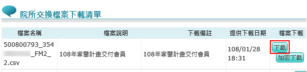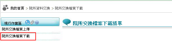 請點選「服務項目:院所資料交換>院所交換檔案下載」