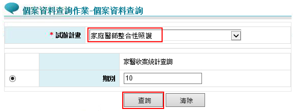 請點選「服務項目:試辦計畫資料維護>個案資料查詢」