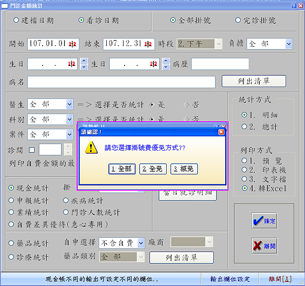 醫聖診療系統-列印報稅用免收掛號費名冊(掛號費優免清冊)操作說明