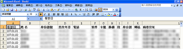優待名冊會直接以『EXCEL』程式轉出開啟,如下圖示,請院所再另存新檔至指定位置即可