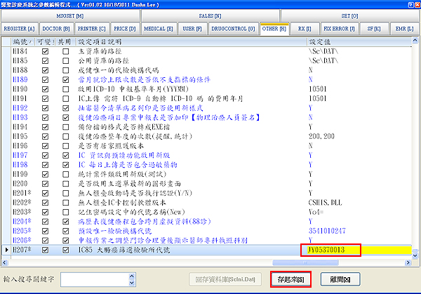 開啟醫聖診療系統參數編輯系統,如下圖示