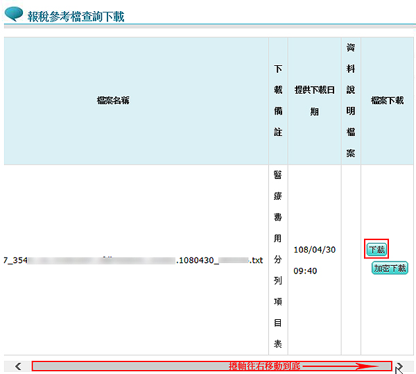 說明:為確保資訊安全,故檔案只保留兩週,系統會依保留日期出現不同的按鍵,若是兩週內的檔案,會出現「下載」或「加密下載」的按鈕 ,若是超過兩週的檔案,會出現「申請」的按鈕。請於申請後次日至我的首頁的「下載捷徑專區」下載。若查詢不到任何資料,請電洽各區所屬費用申報承辦人員諮詢!