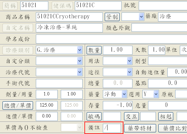 3-1. 每次開立處置皆要列印,請於『備註』欄內輸入「/」再按下存檔即可