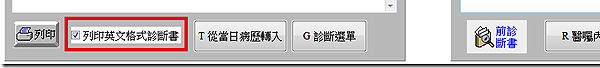 更版說明:原版面增加「列印英文格式診斷書」勾選項目,勾選本項再執行列印即為英文格式。