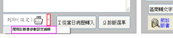 再移至「開啟診斷書參數設定編輯」按下即可出現「診斷證明書參數設定」編輯視窗