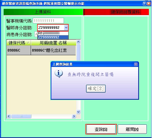 或置入使用雲端藥歷查詢系統的醫師卡與執行跨院重複查詢API送出的醫師ID不同...等。