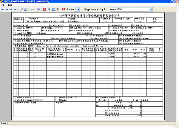 --> 特約醫事服務機構門診醫療服務點數及醫令清單 預覽列印畫面
