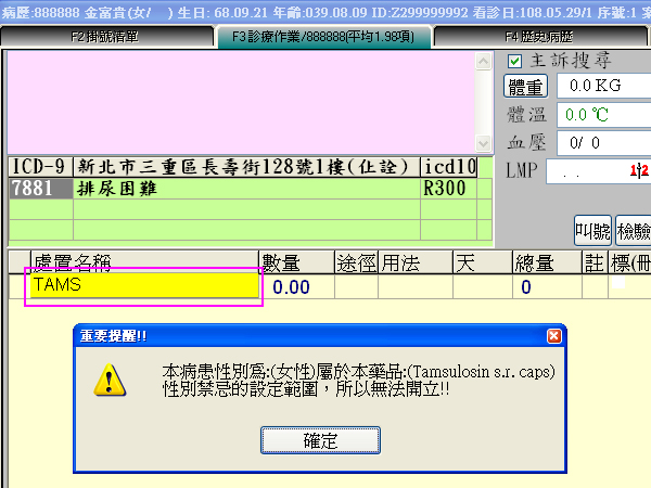 設定完成後,當女性病患開立此藥品時,即會出現如下圖提醒視窗!