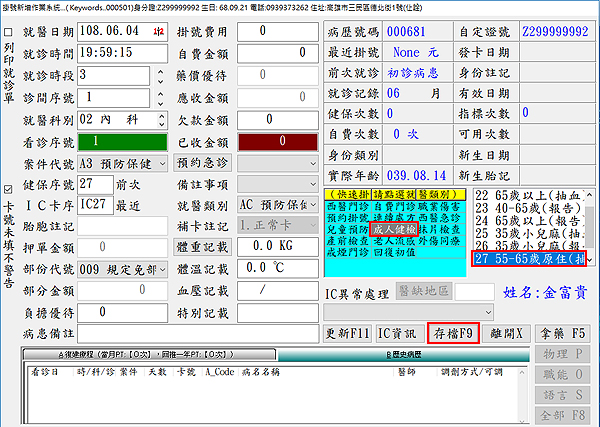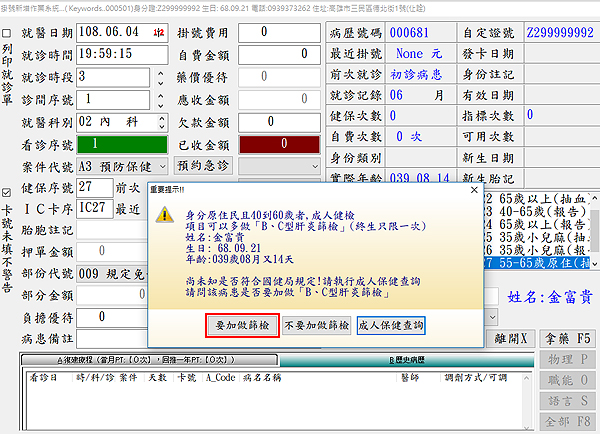 掛號點選『成人健檢』再按下『27』,存檔時會再多一個詢問視窗(如下圖);