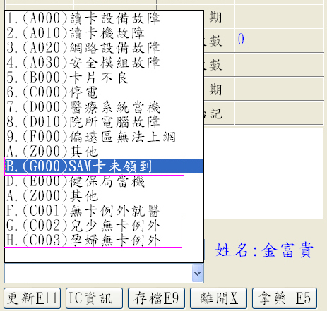 更版說明:掛號畫面『IC異常處理』代碼選單可依院所需求自行設定不選用代碼