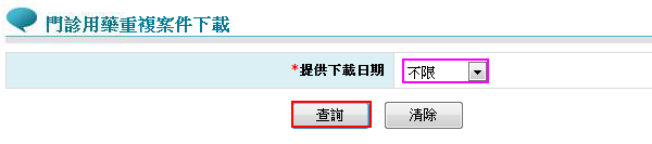 於右方「*提供下載日期」點選「不限」(建議使用最大值)再按下「查詢」