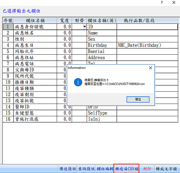 『自健型態』欄位轉出即為預注接種上傳名冊『疫苗型別』欄位,原有型態