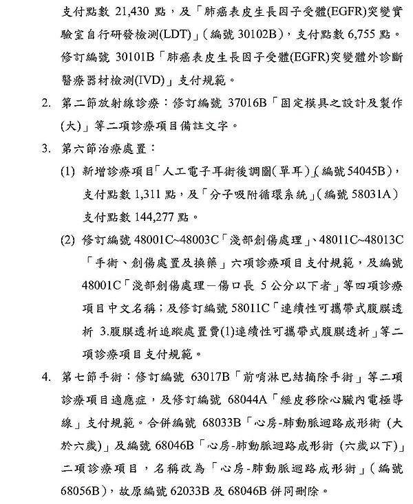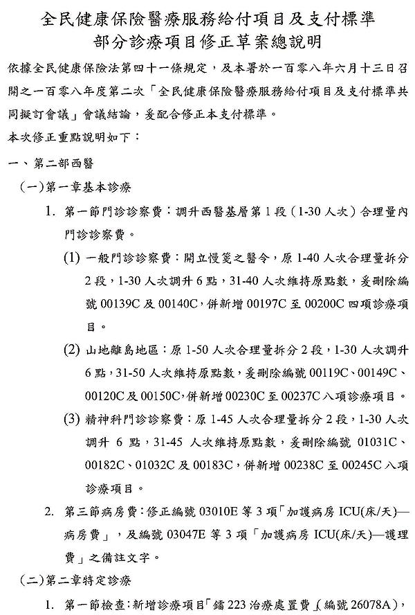 預告修正「全民健康保險醫療服務給付項目及支付標準」部分診療項目草案