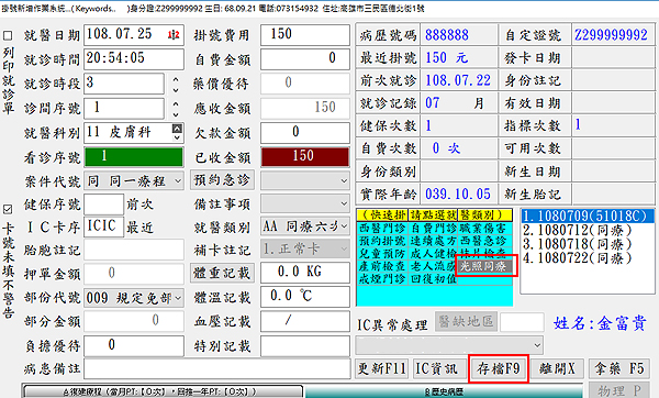 案件代號會跳為『同 同一療程』,按下「存檔」即可。