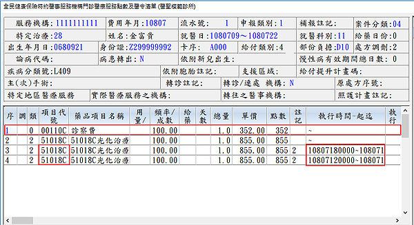 調閱申報病歷,於第一次看診申報案件會有同一療程鍵入的處置內容合併申報項目