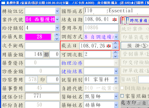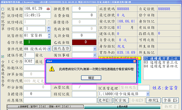 設定完成後,掛入08案件時,若系統比對找不到該病患第一次開立慢箋資料或