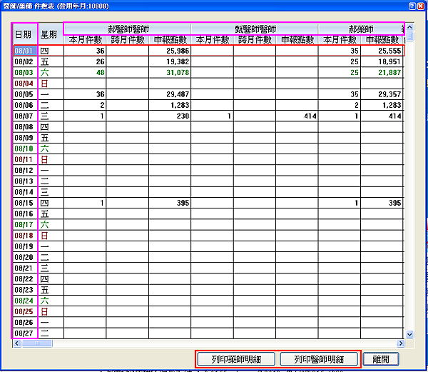 申報前查閱統計『專任、支援醫師、藥師每日案件數』