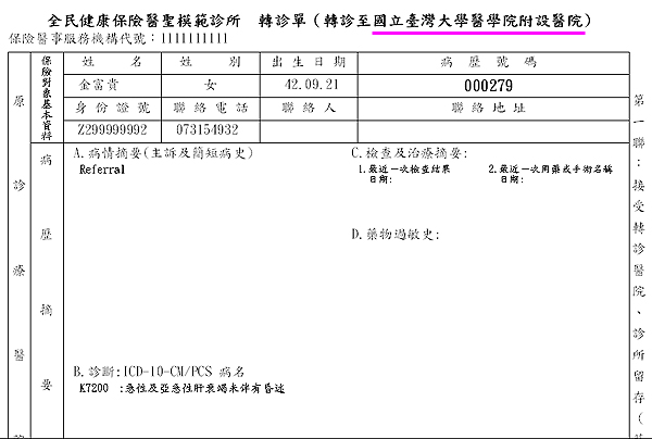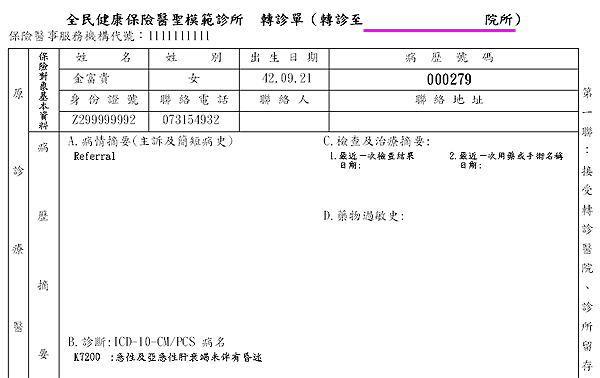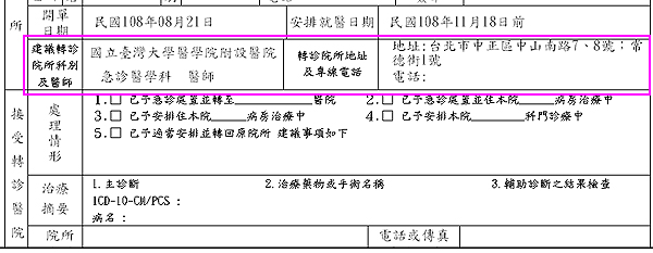 ~~~~~~指定院所資訊僅於下方「建議轉診院所科別及醫師」區印出