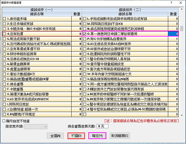 申報作業優化功能:新增篩選「同病患同日同科或同日不同科申請二筆診察費病歷」協助用戶加強事前檢查